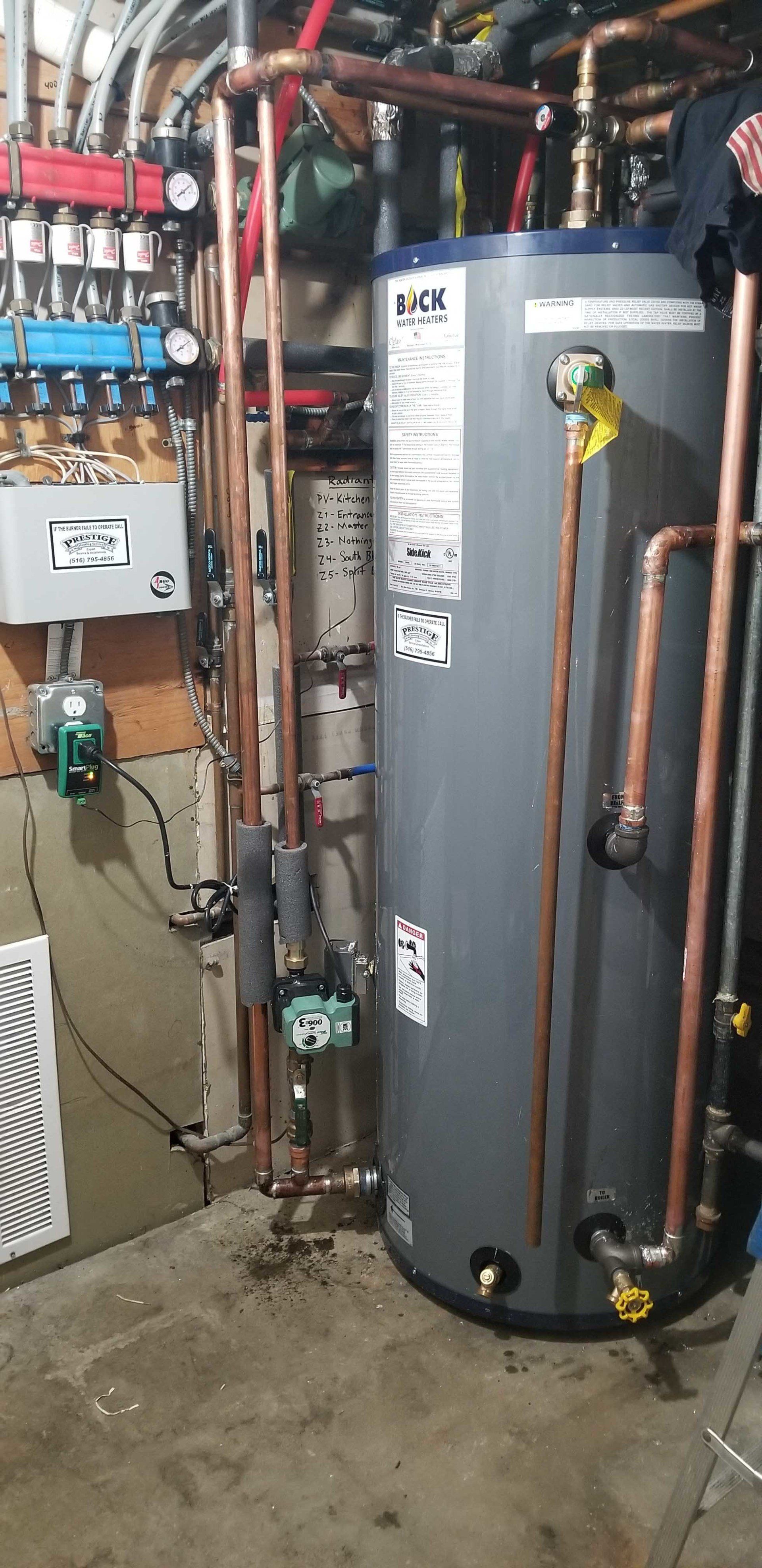 Shivering at the thought of another cold shower? Get in touch with us today for your hot water heater. Prestige Home Heating Service has been successfully keeping you in warm water since 1996. Our hot water heaters feature mixing valves that ensure a constant safe temperature for all your hot water needs. Your health and safety matter to us!